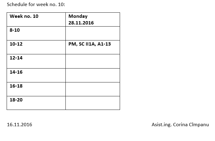 Deadline: Week no. 10, 28th of November 2016, 10-12, A1-13